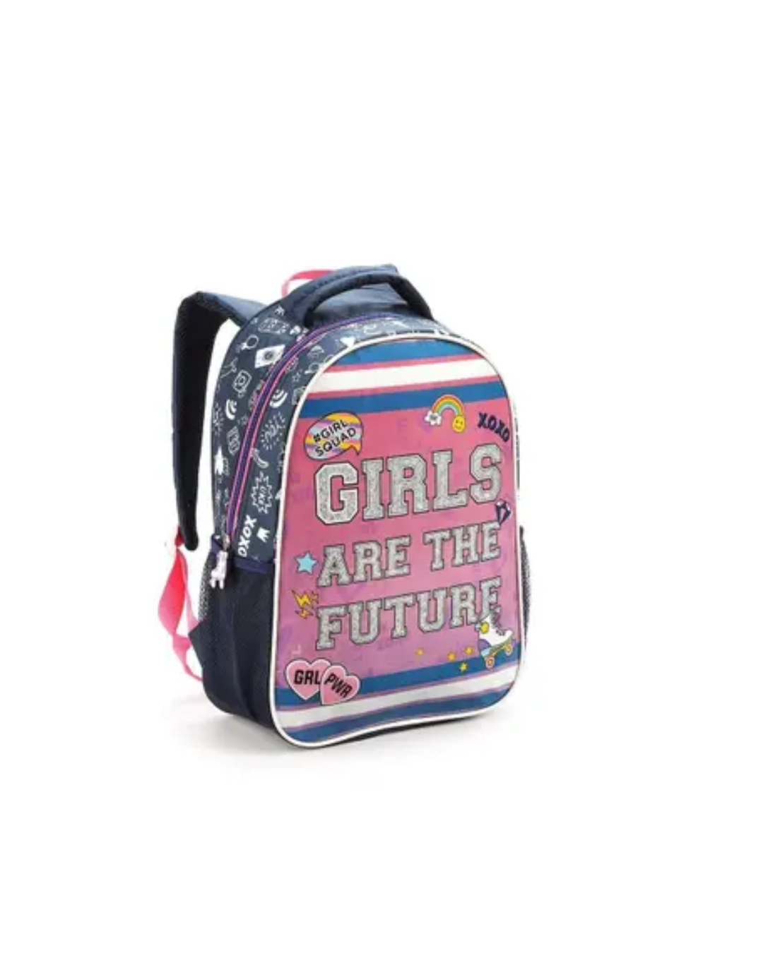 Mochila Escolar Infantil Feminina Mochila infantil 70% PVC e 30% poliéster. O modelo possui bolsos laterais porta garrafas, puxadores personalizados, identificador no verso. Possui ótimo espaço interno para transportar livros e cadernos, mochila resistente para uso de dia dia. Com Essa Mochila Escolar Sua Filha Nem Vai Sentir a Rotina Escolar Características: - Composição: 70% POLIESTER30% PVC - Puxadores Personalizados.