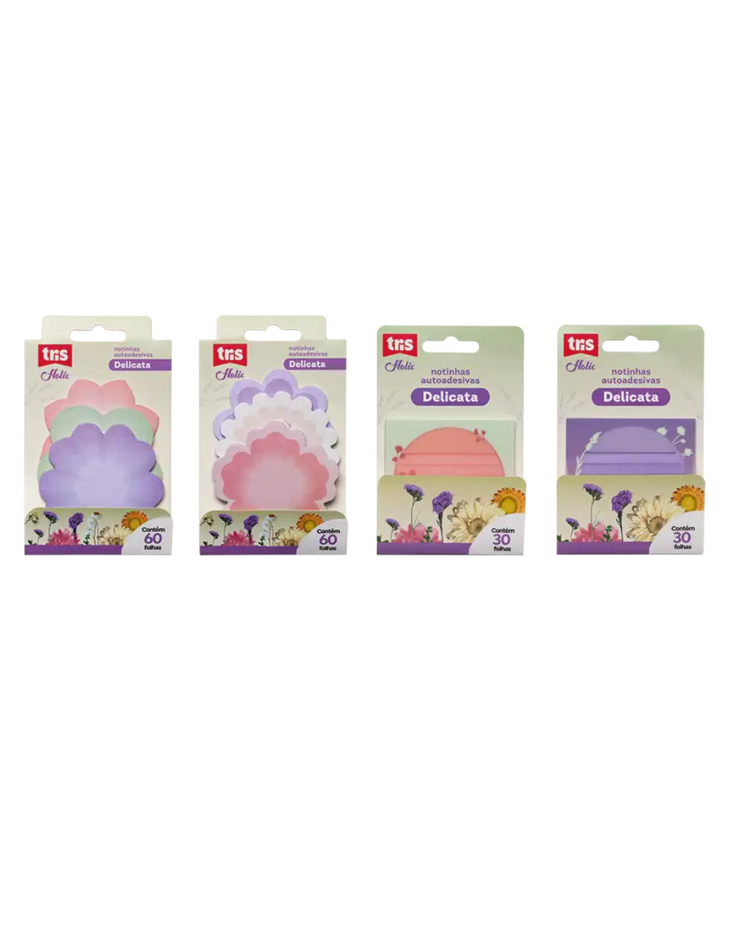 Uma tendência que nunca sai de moda, o floral está em alta com uma abordagem romântica e poética. O mood Delicata explora cores claras e transparência, dedicado à delicadeza e à naturalidade das flores. Notas autoadesivas Delicata bloco pautado 73x73mm, em material translúcido.