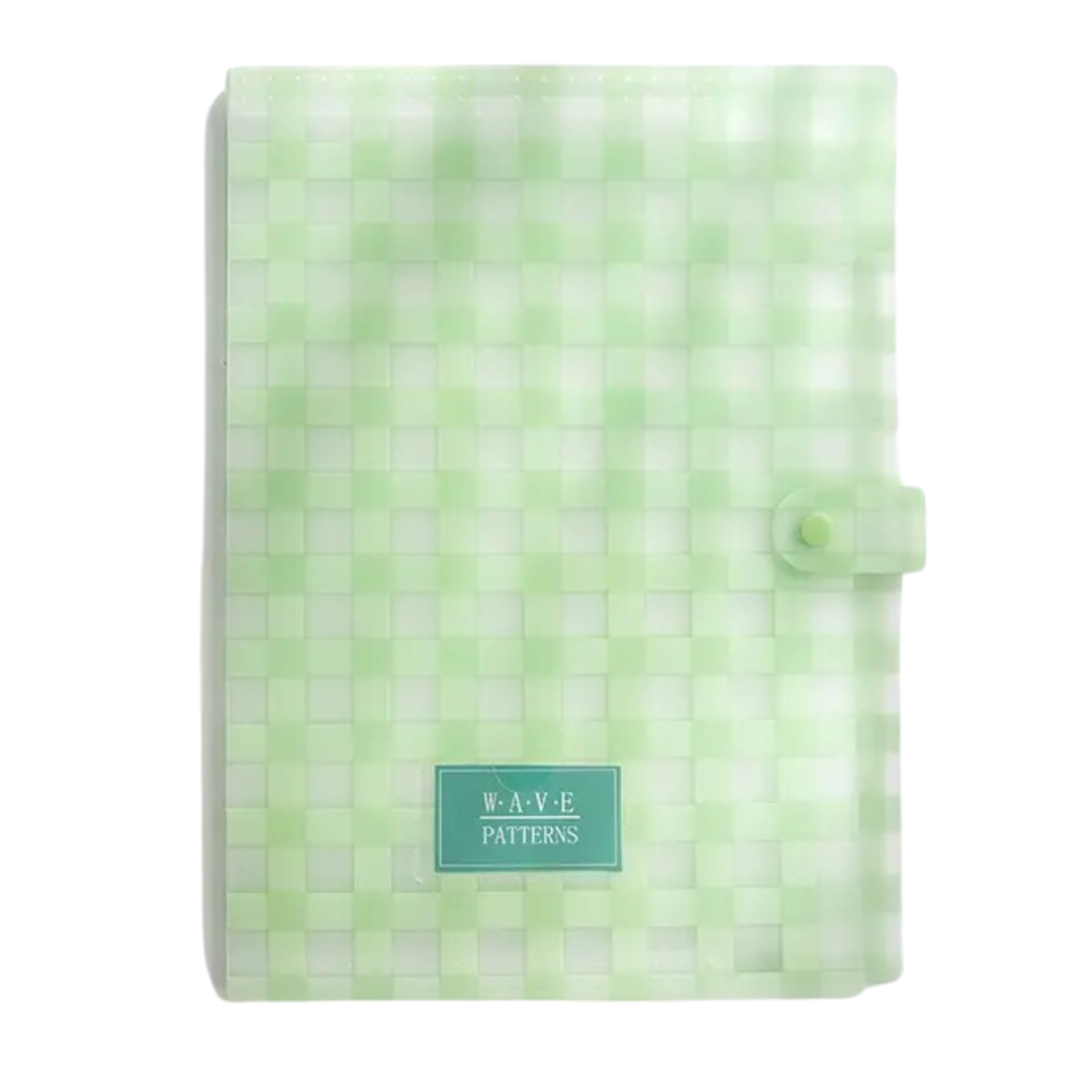 Linda pasta sanfonada porta aquivo xadrez na cor verde para organização de documentos com fecho.